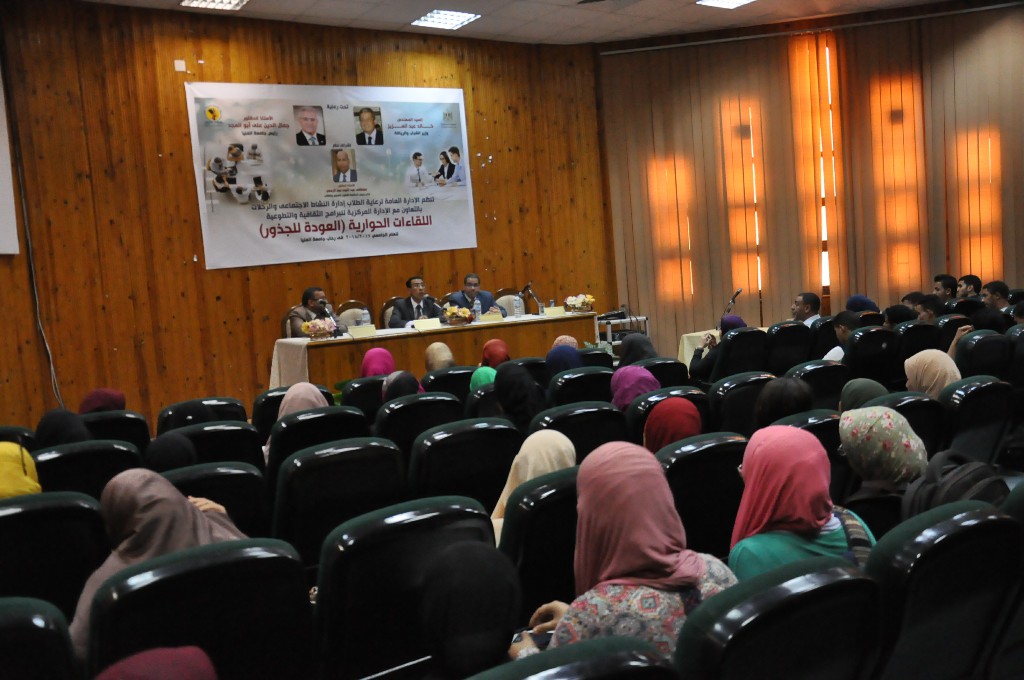 تحت رعاية المهندس خالد عبد العزيز وزير الشباب والرياضة، والدكتور جمال الدين على أبو المجد رئيس جامعة المنيا، نظمت إدارة النشاط الاجتماعى والرحلات بالإدارة العامة لرعاية الطلاب بجامعة المنيا بالتعاون مع الإدارة المركزية للبرامج الثقافية والتطوعية بوزراة الشباب والرياضة، وبإشراف الدكتور مصطفى عبد النبى، نائب رئيس الجامعة لشئون التعليم والطلاب، لقاءاً حوارياً ضمن اللقاءات الحوارية التى تنظمها وزراة الشباب والرياضة بجامعات ومعاهد مصر، لتعريف الشباب عن الأخلاق والقيم والعادات في تراثنا المصري الأصيل، وعلاقتها بمحيط المجتمع والأسرة والوطن.